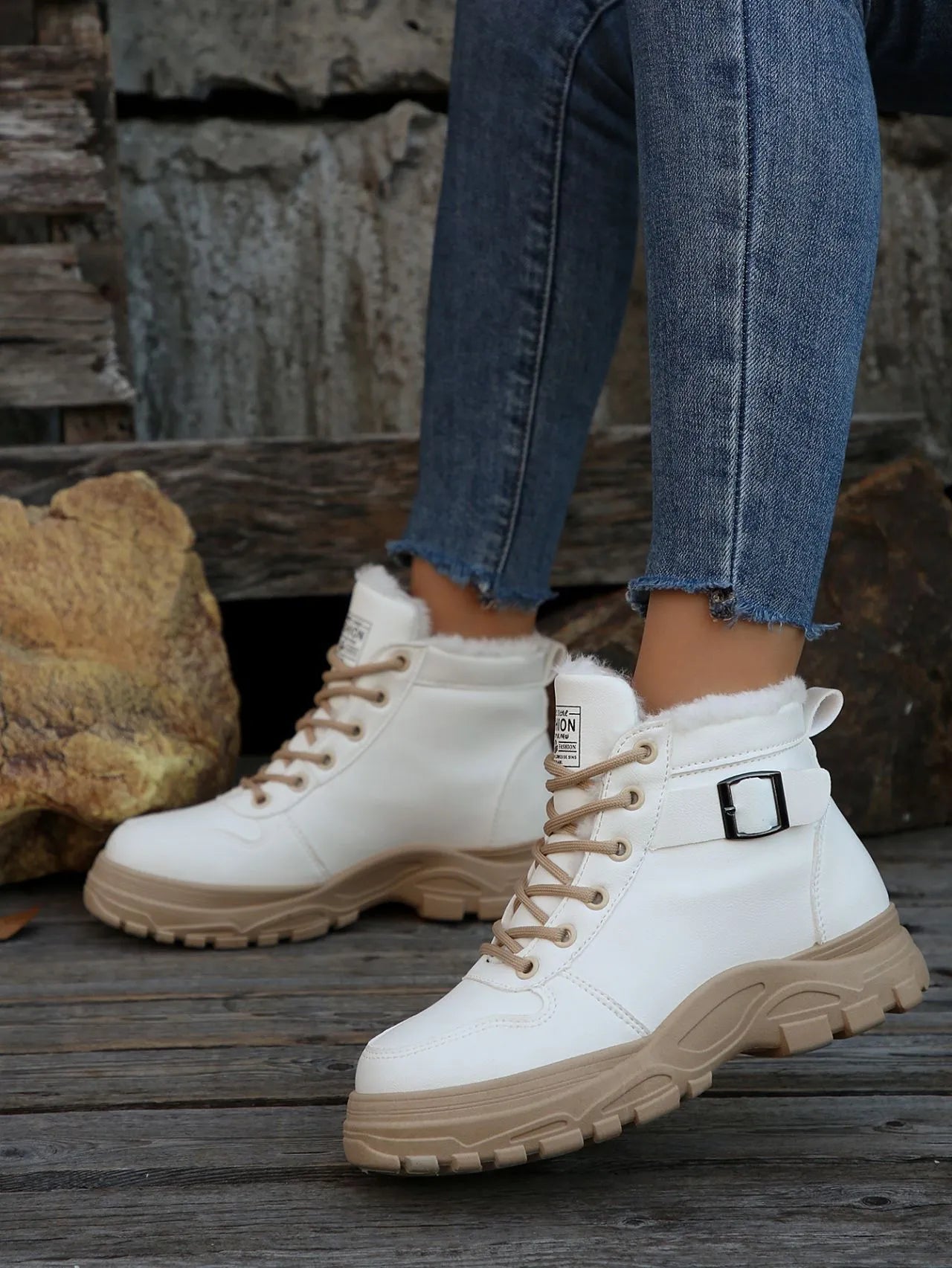 Fabriquées à partir de matériaux de haute qualité (simili cuir résistant), ces bottes bénéficient de finitions soignées assurant une longue durée de vie. Le design avec lacets à l’avant et boucle latérale apporte une touche tendance tout en assurant un excellent maintien.